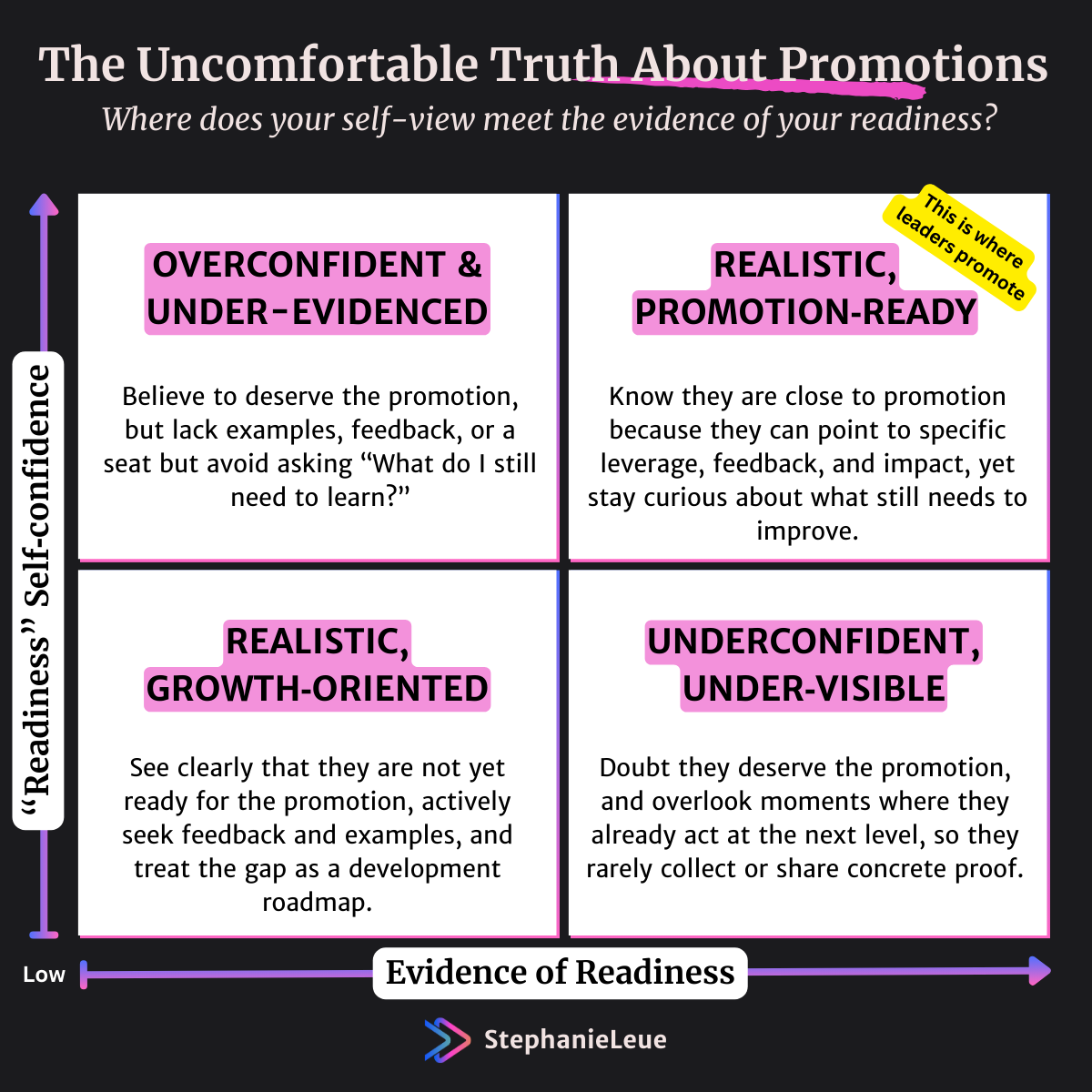 Overconfident people often skip this process. They expect the system to “notice” them. They treat promotion as something owed, not something they actively engineer.